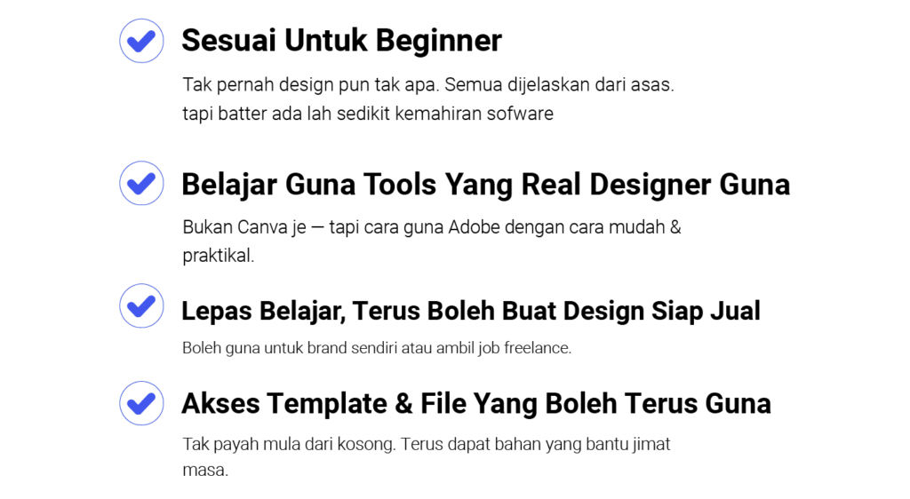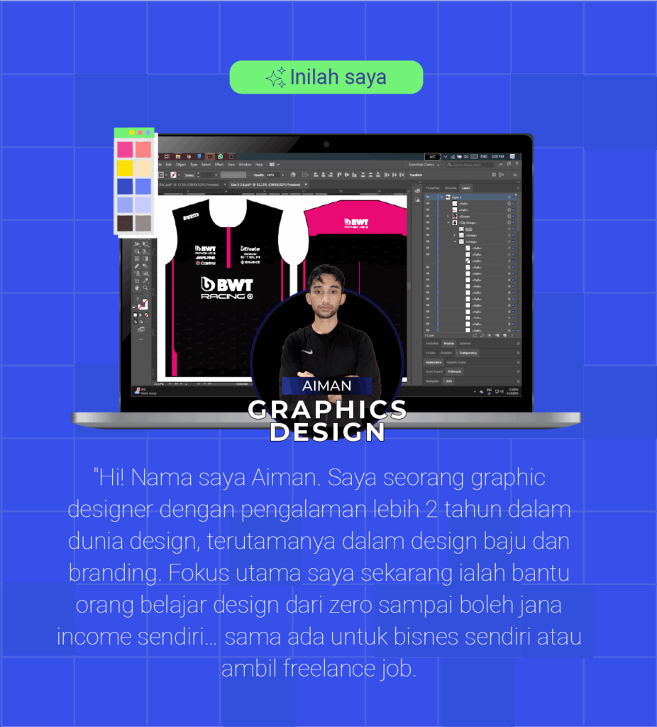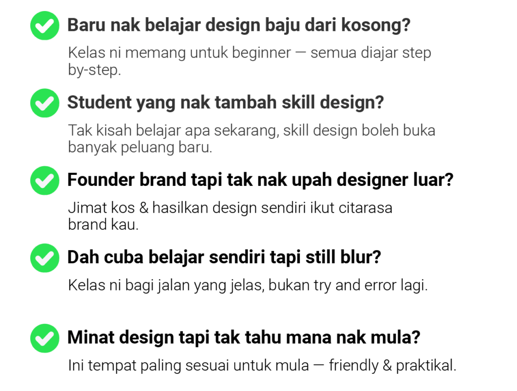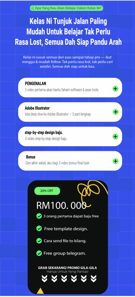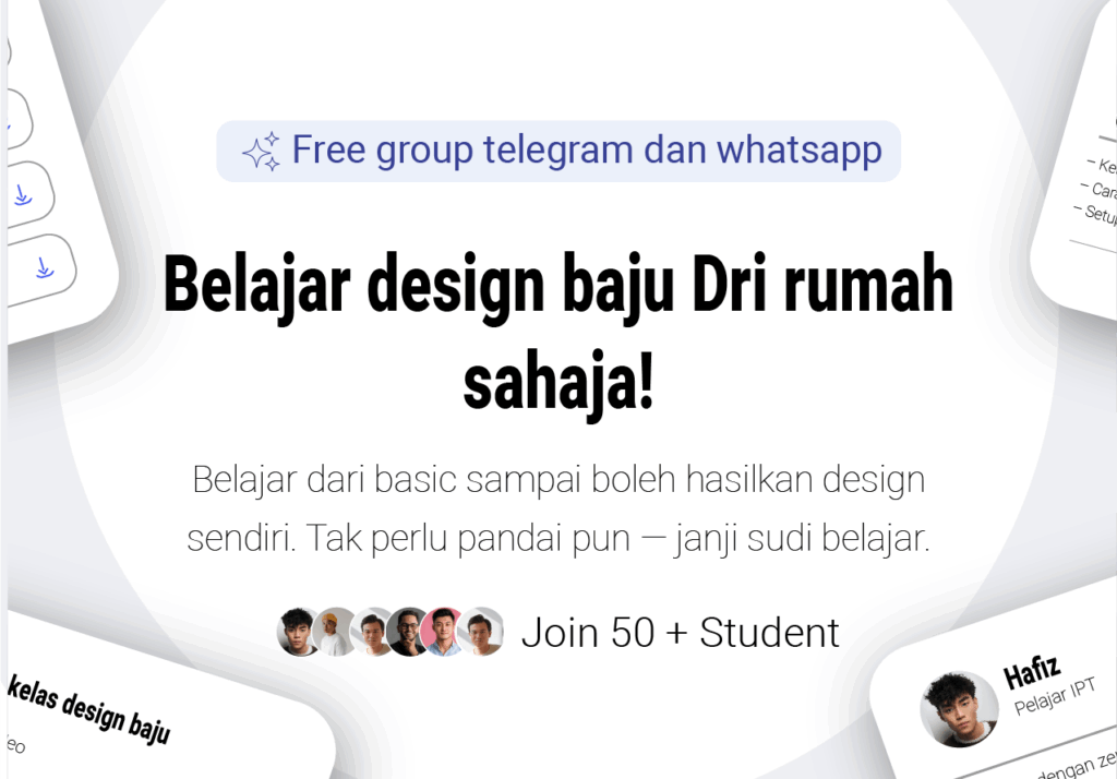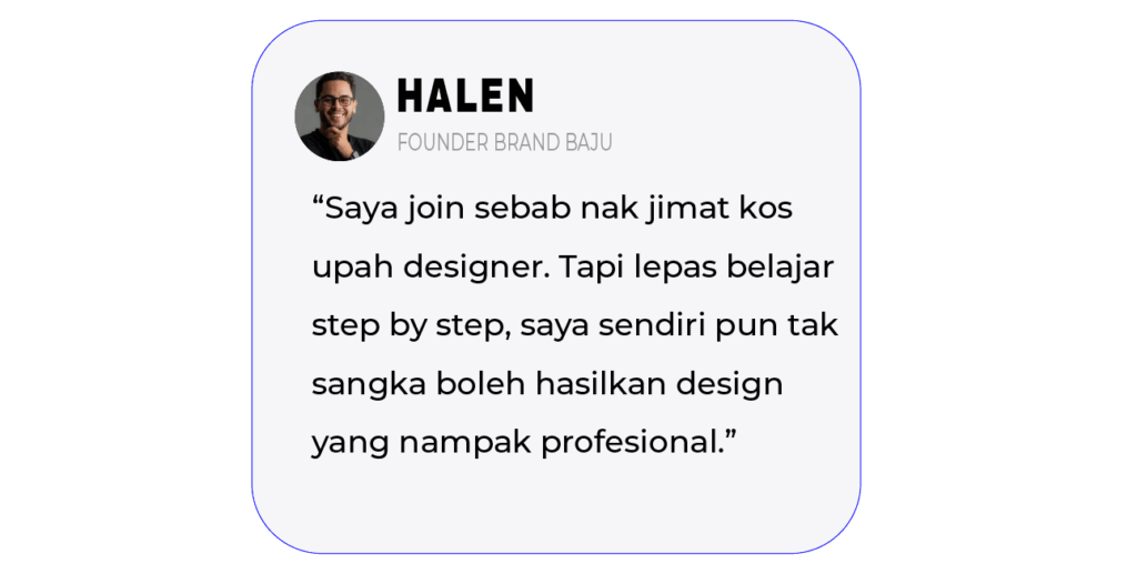 Kelas ni direka khas untuk bantu kamu mula dari kosong, faham step-by-step proses design — dan terus hasilkan karya yang bernilai.